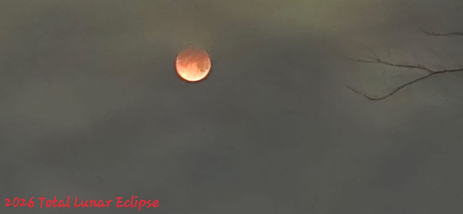 March 3, 2026, Lunar Eclipse from Huntsville, Alabama. Photo by my brother, Bob Koehn, from his phone.